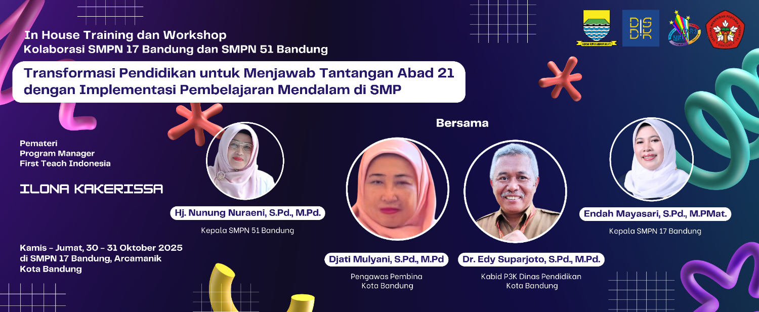SMPN 17 Bandung dan SMPN 51 Bandung berkolaborasi menggelar IHT dan Workshop dengan tema Transformasi Pendidikan untuk Menjawab Tantangan Abad 21 dengan Implementasi Pembelajaran Mendalam